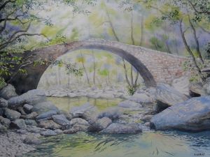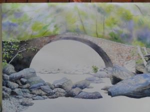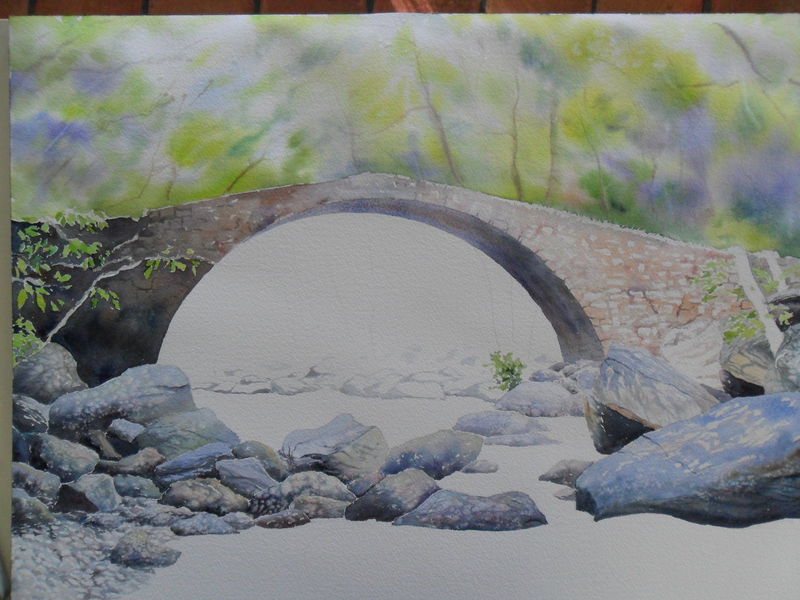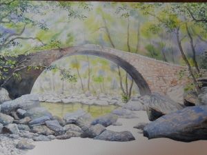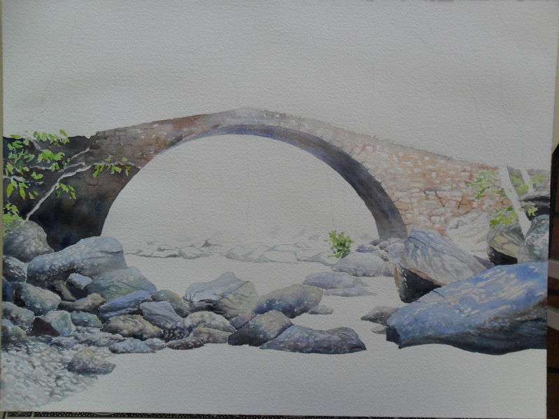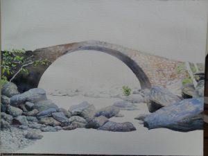 Voici six photos retraçant la réalisation d’une aquarelle pas à pas, à partir d’une photo du pont de Zaglia, en Corse.