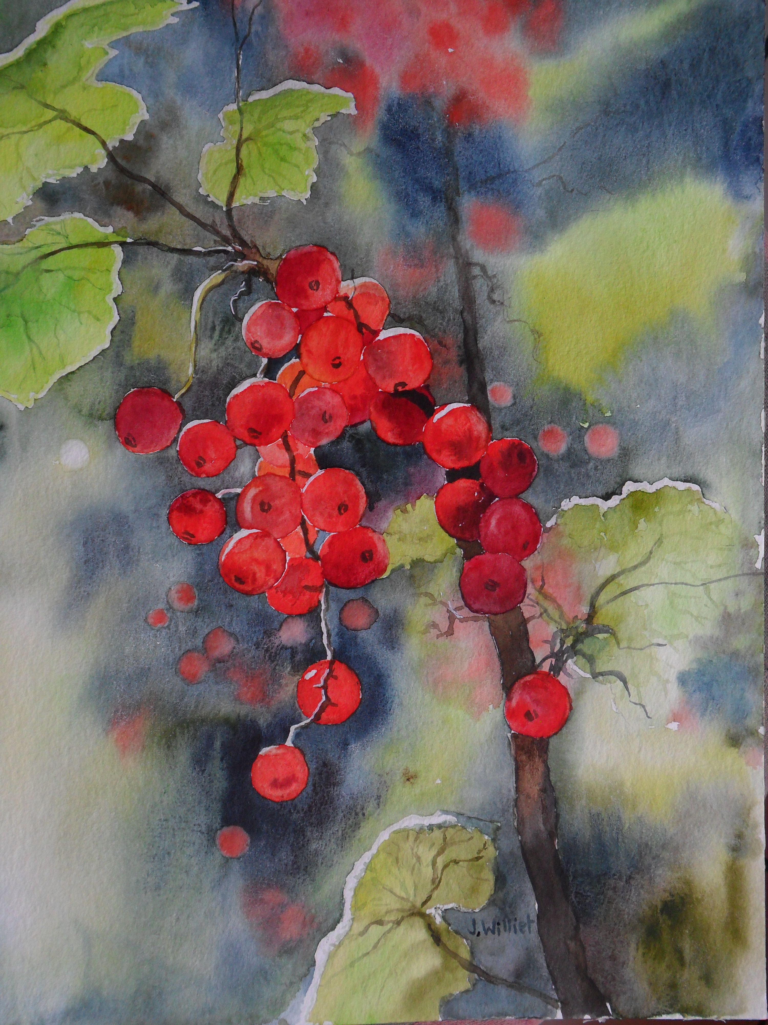 Après une absence de quelques jours pour raison importante, je retrouve le vaucluse et me voici plongé aussitôt dans le bain ; il faut penser à autre chose.. Une de mes dernières aquarelles réalisée sur le thème des fruits rouges , Les groseilles, en espérant qu’elle vous plaise..