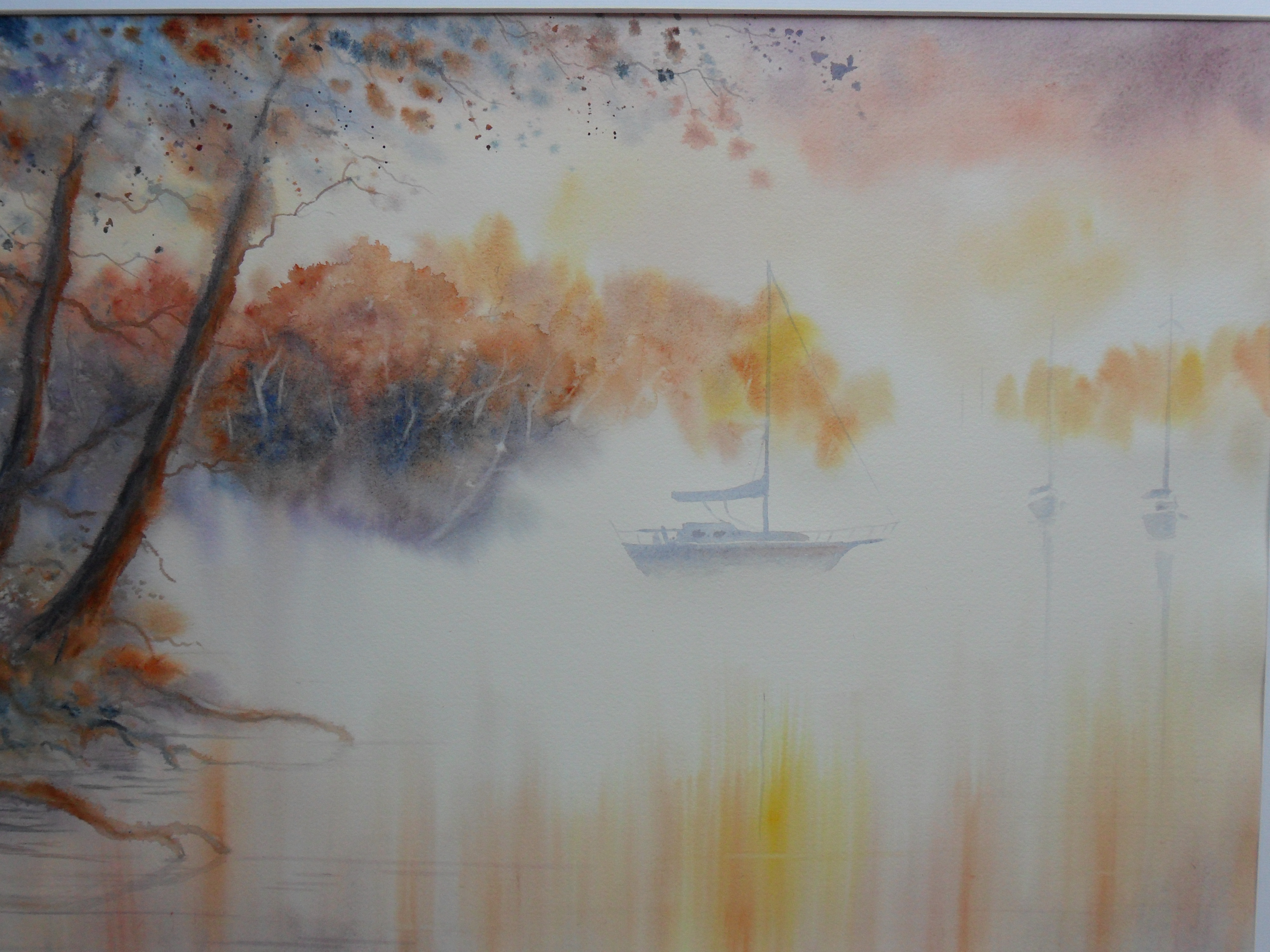 La petite histoire veut que ce tableau n’était pas prévu au départ et que je l’ai terminé la veille de l’accrochage. L’autre « voilier dans la brume » ayant été réservé j’ai dû en créer un autre sur le même thème.