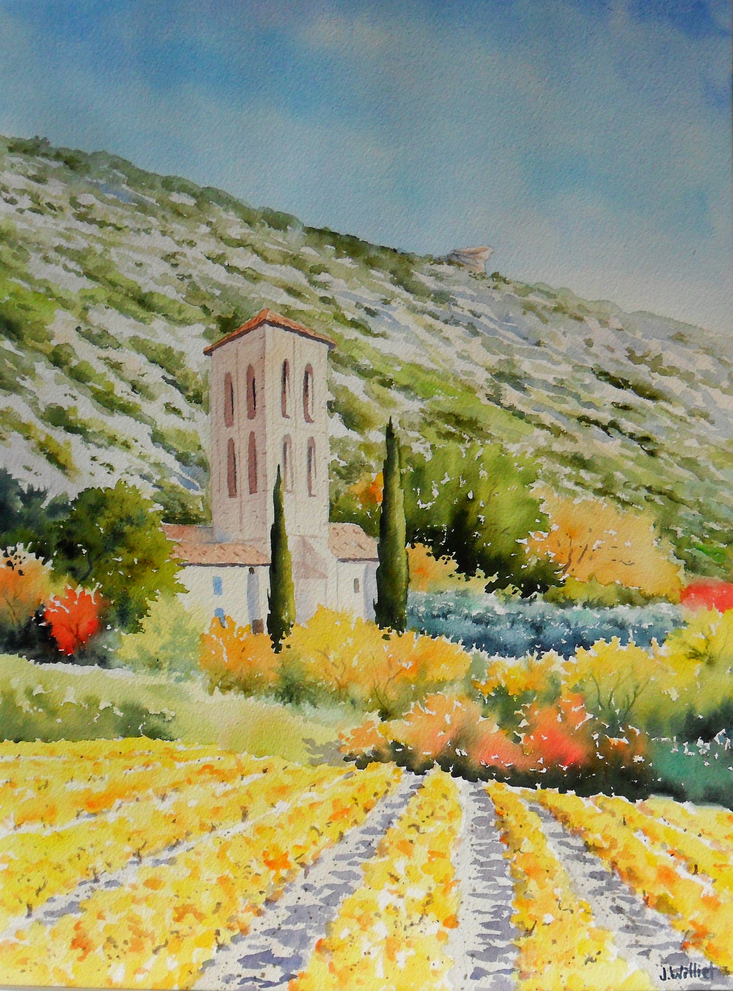 Il s’agit de Notre Dame d’Aubune (à Beaumes de Venise) en automne.. C’est le même sujet que je traitais avec certains élèves avant le confinement, mais pas la même photo..