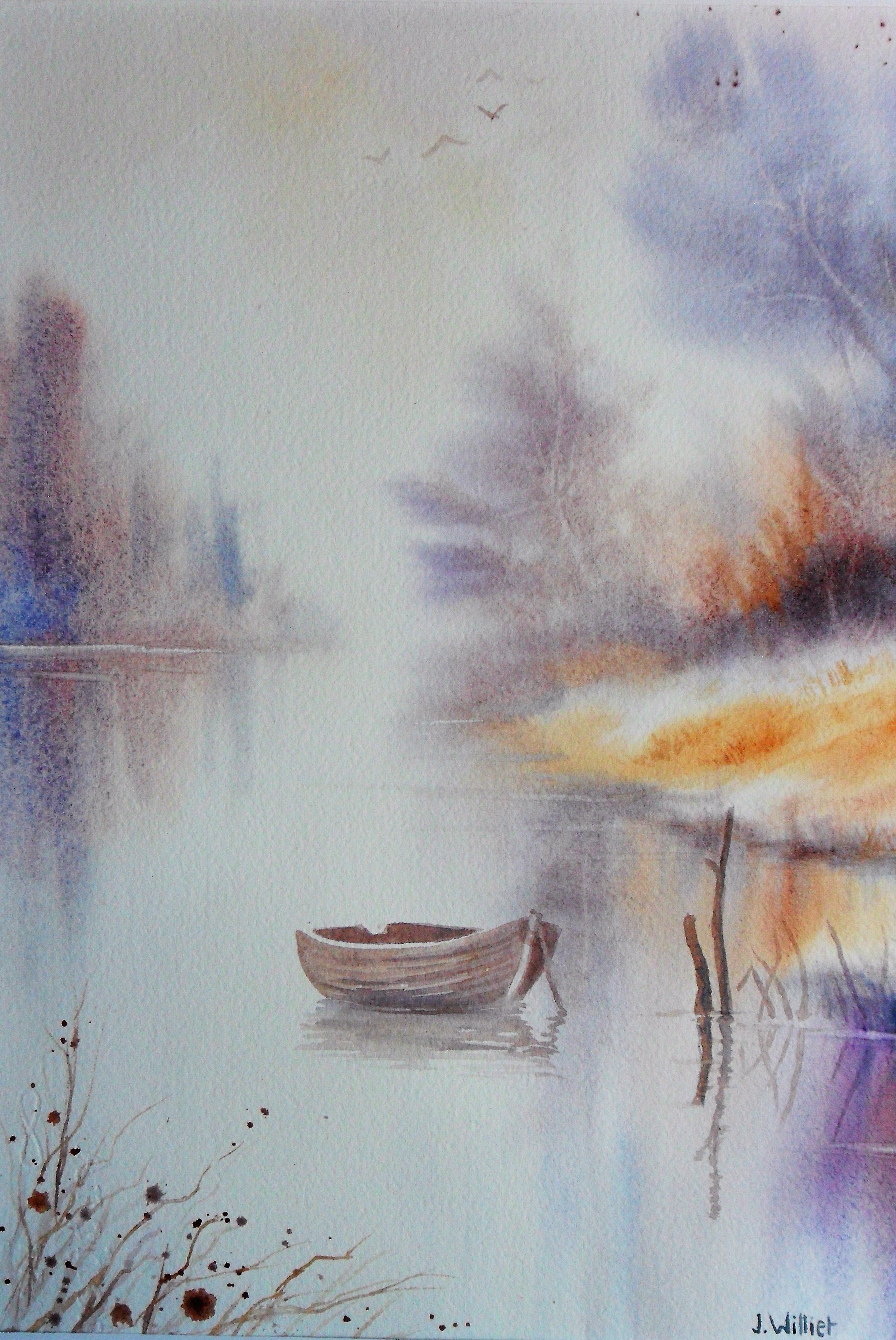 Je vous laisse avec ces 2 aquarelles, peintes dans le mouillé sur mouillé.. La première est une vision de calme et de sérénité (qu’il faudrait avoir dans ce que nous vivons en ce moment)