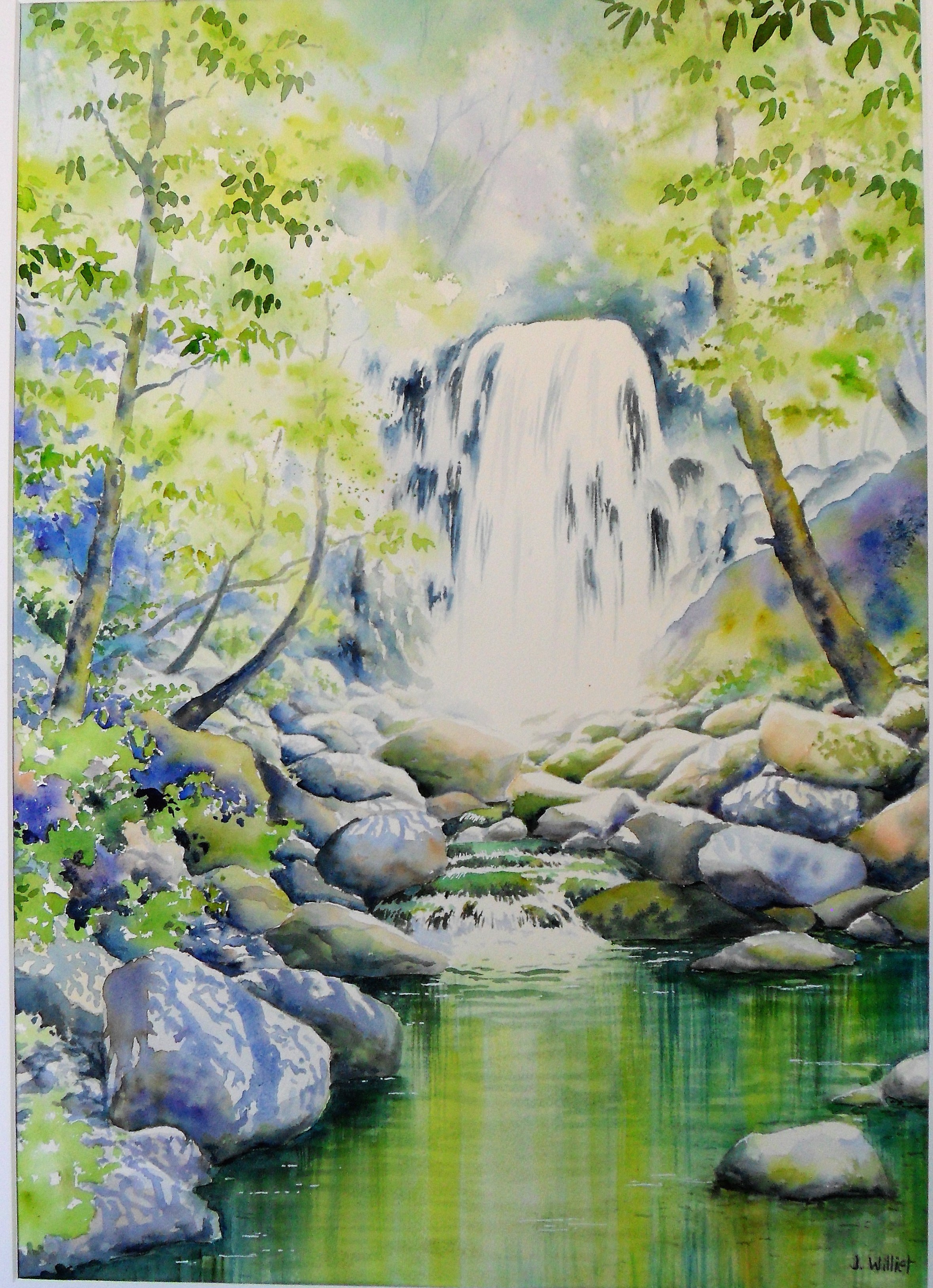 J’ai pris du temps pour peindre cette cascade ; le départ de mes 2 rivières précédentes m’a encouragé en cela :