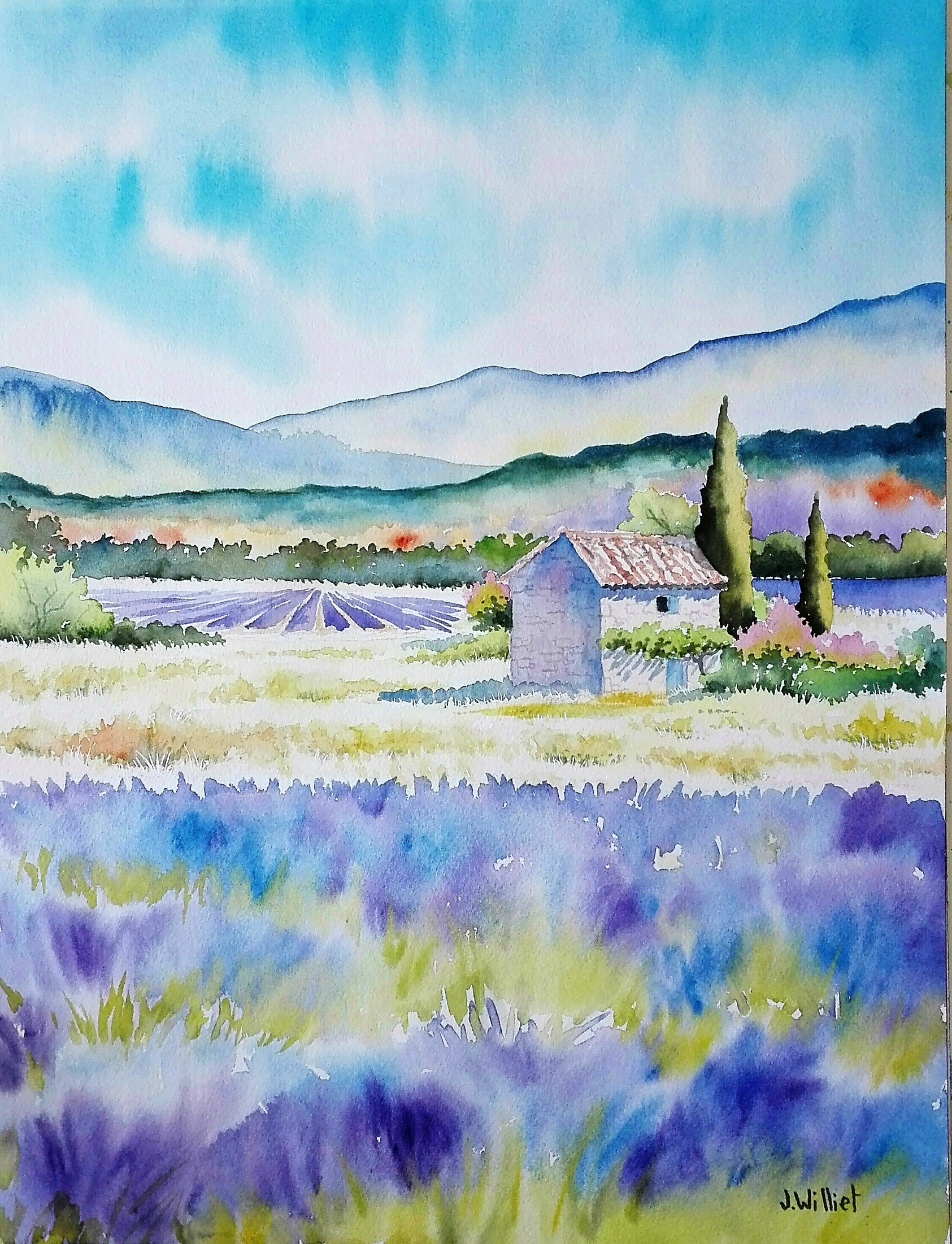 La saison des lavandes est presque lancée ; c’est une question de jours pour les premiers fleurissements bleus-violets-mauves.. En voici quelques aquarelles :