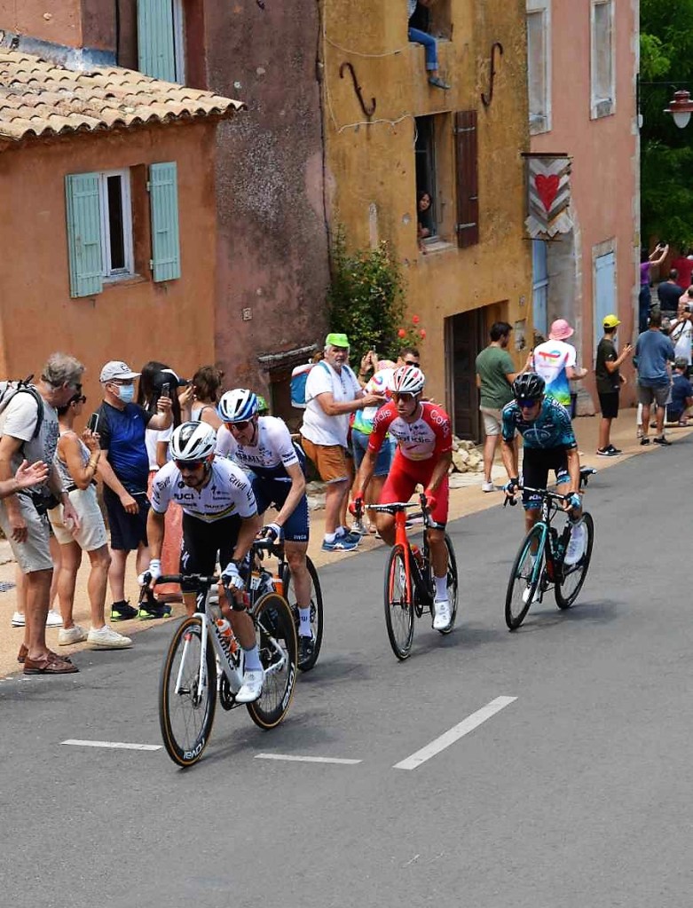 Il ne vous aura pas échappé que le Tour de France soit donc passé par Roussillon hier. Les routes étant bloquées assez tôt je n’ai pas pu me rendre là-bas pour la journée. J’ai regardé à la télé (et chronométré) leur passage de Velleron à Roussillon : même en rallongeant par Fontaine de Vaucluse et Gordes, ils ont mis 40 minutes ! Je suis dégouté.. Avec mon vélo électrique je mets 1 h 30.. Bon, c’est vrai il est très lourd ; (il doit peser 250 kg, ou presque..), mais quand même..