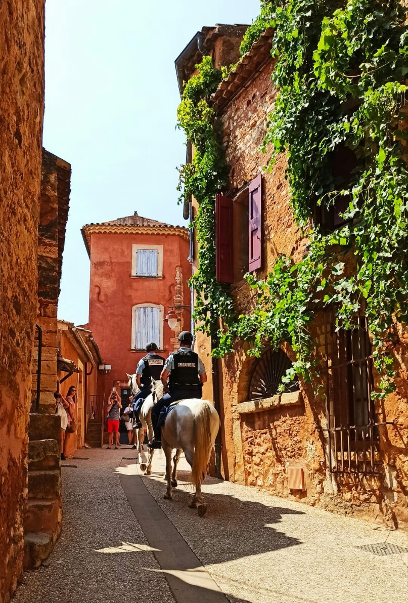 En voyant cette image (prise à Roussillon devant la galerie) on peut constater que certains gendarmes ne sont pas que à cheval sur leurs principes.. J’ai imaginé qu’ils pourchassaient les non-vaccinés ainsi, avec un fouet et un filet (comme dans la planète des singes) et qu’ils les trainaient ensuite derrière leur monture sous les huées et les quolibets de la foule hystérique… Non, il n’en est rien ; je dois avoir trop d’imagination.. Et pourtant, une de mes élèves est passé l’autre jour à la galerie, avouant être non vaccinée ; j’ai eu beau appeler le GIGN et crier à l’aide il ne s’est rien passé.. Non, rassurez-vous, chez moi c’est comme le slogan de cette enseigne de restauration rapide : Venez comme vous êtes !… Pas de discrimination ni de jugement, le monde a assez de problèmes pour en rajouter.. Quelques soient les raisons des pour ou des contre, je me dis que l’Humain est plus important. La tolérance va dans les 2 sens. Je ne suis pas « fan » du pass sanitaire obligatoire, mais bon, je suis désormais doublement vacciné. Maintenant, je peux aller au resto, au ciné, voyager.. ( comme si j’en avais le temps..). J’hésitais justement pour mon prochain voyage entre La Syrie, la Corée du Nord ou l’Afghanistan.. Vous m’aiderez à faire mon choix..