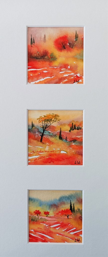 2. Très réussis vos triptyques aux couleurs flamboyantes de l’automne. Ainsi que les vignes, (ou lavandes oranges; je me souviens de cette anecdote….) amicalement.