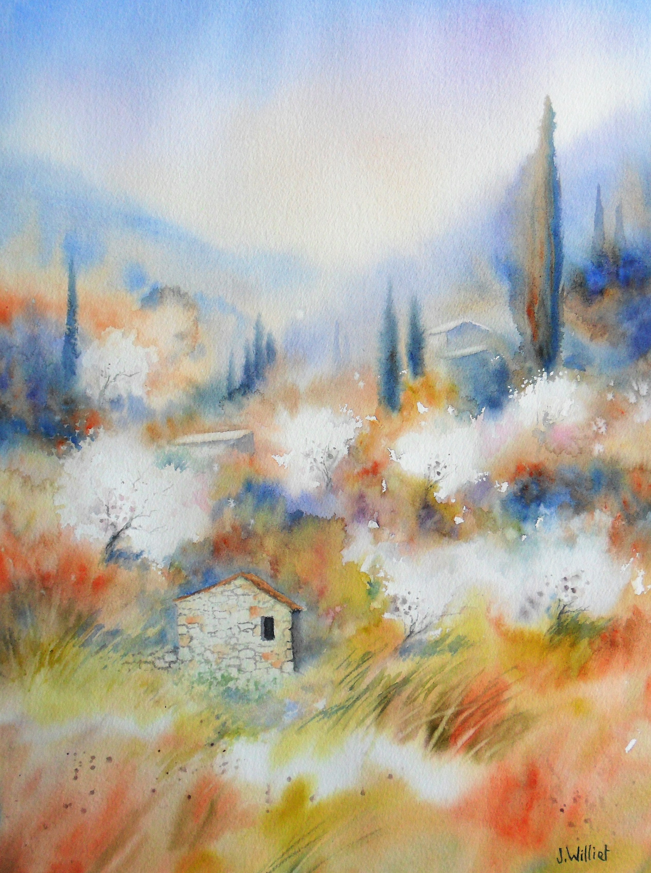 J’en ai profité pour retravailler cette aquarelle d’amandiers (que certains reconnaitront ) :