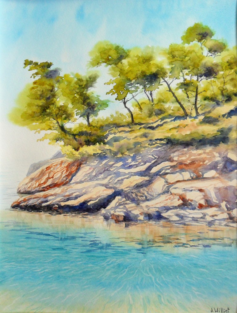 En aquarelle, mon ennemi c’est le « gouachage » de la surface.. Tout ce qui est saturation de pigments. Alors j’essaye d’être fidèle à mes principes ou mes convictions, j’essaye de peindre des paysages lumineux et transparents qui respirent et qui inspirent le rêve et l’évasion.. Le dernier en date est celui-ci :