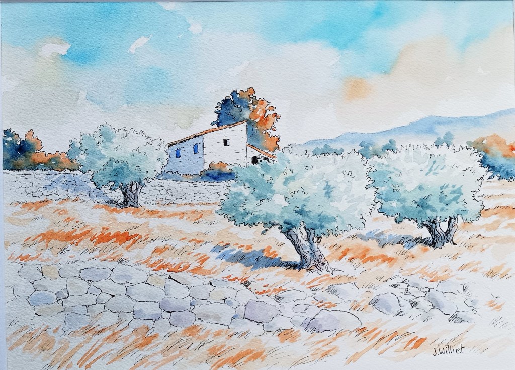 Avant de terminer cet article, je voulais souhaiter du courage à certaines personnes qui me lisent et qui sont en traitement médical « plutôt pénible ».. Je leur dédie ces aquarelles. Contrairement à ce que dit la chanson de Brel, on laisse faire le hasard et on ne se méfie pas du fil de l’eau..