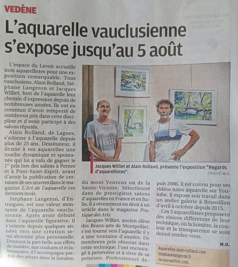 L’exposition de Vedène se poursuit et un bel article est sorti hier dans La Provence :