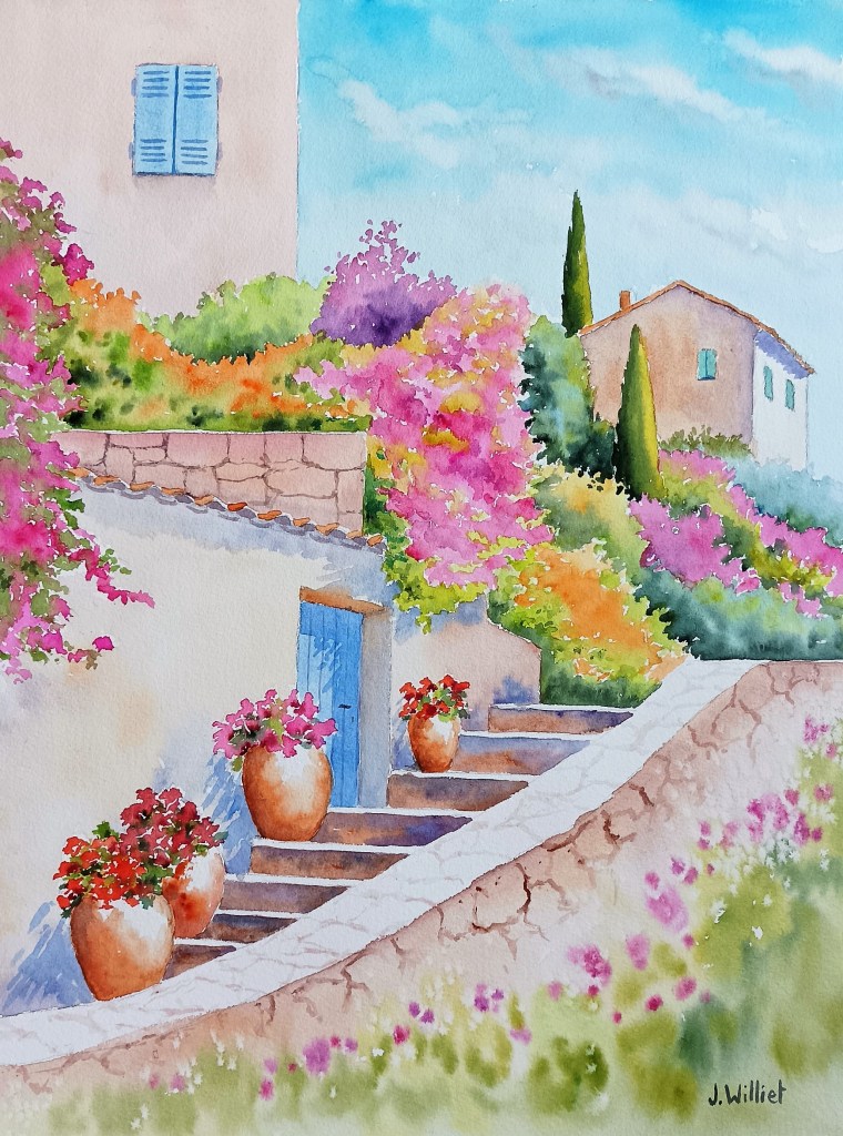 Je suis quand même allé récupérer mes aquarelles à St Sériès samedi. Bon, je n’ai pas eu de prix. J’aurais bien aimé en pleurer pour compenser le déficit pluviométrique de la région, mais j’était plutôt content d’avoir côtoyé de grands aquarellistes. Content aussi pour Véronique Albert (qui avait convoyé mes aquarelles là-bas) ; Catherine Rey, D. Boni, JP Olivari et JL Decron qui ont été justement récompensés. Je me console en me disant que ni C. Izquierdo ni Thierry de Marichalar n’ont eu de prix, je suis donc bien accompagné.. et puis un collègue m’a dit récemment : « les prix c’est juste un bout de papier, le vrai premier prix on l’a dans le regard de la personne qui achète notre aquarelle.. » Bref, on peut trouver d’autres raisons pour pleurer.. Plus graves… La hausse du prix de l’énergie, des carburants, l’inflation, les déclarations de Sandrine Rousseau, les défaites de l’OM, le salaire de M’Bappé, le retour de la Star’Academy ou l’audimat d’Hanouna… Ah la la…. Cela me consterne parfois de voir comment certains médias et réseaux sociaux nous maintiennent dans un envasement insidieux de médiocrité…
