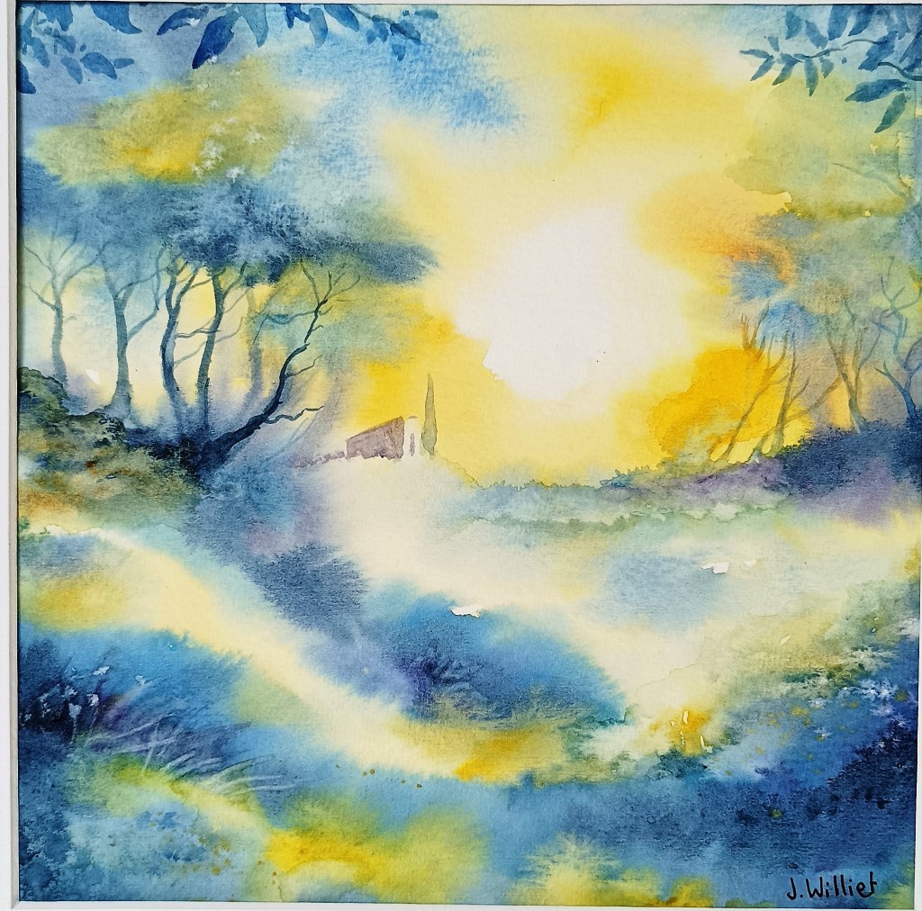 En voici un petit aperçu avec ce paysage en jaune et bleu :