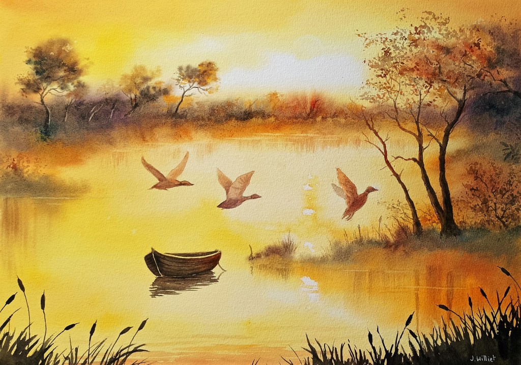 Tout à fait en phase avec vous . J’adore les petites aquarelles « coucher de soleil ». En parlant de canards, ma famille de petits canetons représentés à l’aquarelle m’a valu un second prix hier soir à une exposition ! Merci à vous de nous avoir offert ce sujet original . Toute ma reconnaissance et mes amitiés .