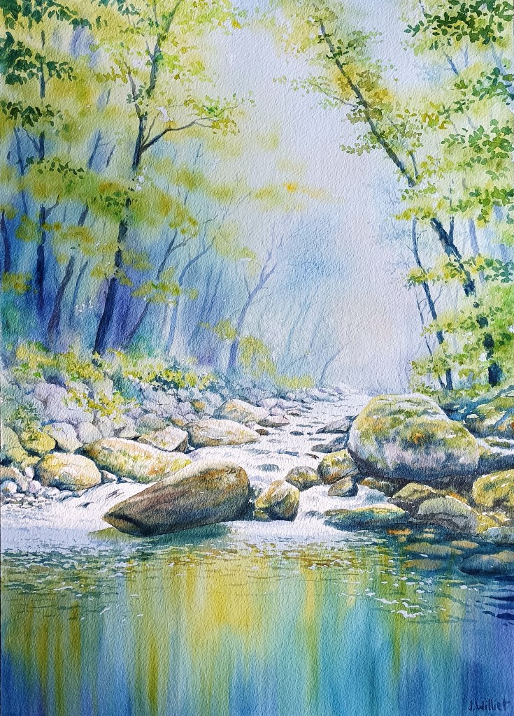 Dans ma série des rivières, la dernière en date s’intitule : « L’eau pure des forêts » :