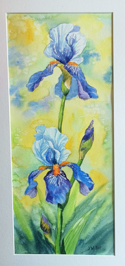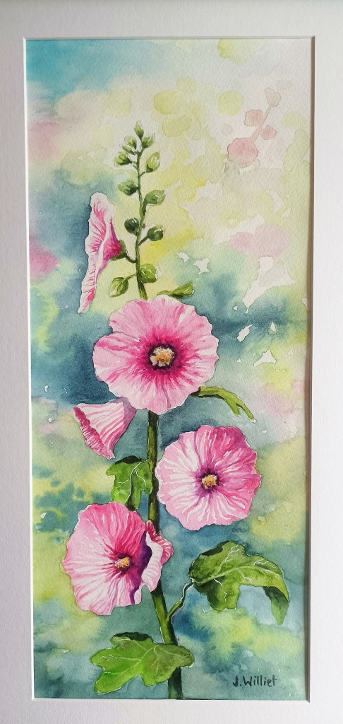 Des roses trémières, des iris, dans des formats verticaux (17 x 40 cm). Il est encore trop tôt pour les coquelicots, mais ça viendra..