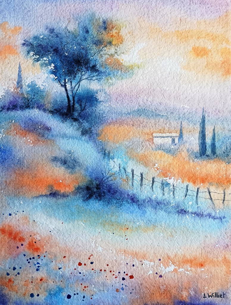 Je suis sur d’autres sujets également, mais ce sera à voir une autre fois. Mon projet de faire éditer un deuxième livre de mes aquarelles se heurte au budget (même pour 100 exemplaires) et à la qualité des photos qui ressortent trop saturées et contrastées par rapport aux originaux. J’y retravaillerai plus tard..
