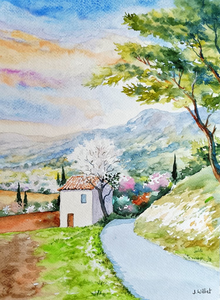 Malgré tout, malgré tout il faut relativiser, se dire qu’on est pas en Ukraine, en Turquie, en Syrie , ou en Afrique de l’est par exemple, bien sûr, y a pire ailleurs.. Je l’ai déjà dit des dizaines de fois sur ce blog.. A quoi bon..? Je finis par débloquer parfois. D’ailleurs si j’ai titré « Je débloque » cet article c’était pour dire que l’aquarelle fluidifie notre quotidien.. Rêver, s’évader, par la voie de l’aquarelle, dans des paysages et des légèretés dont on a bien besoin en ce moment..