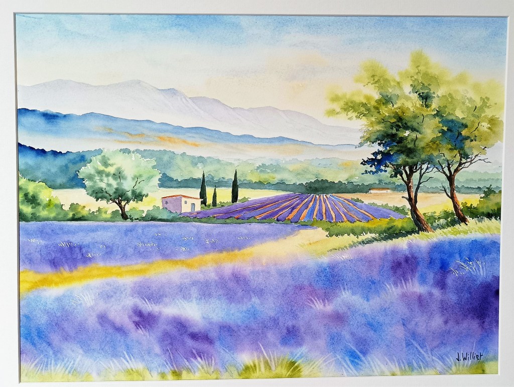 Il en est de même pour l’aquarelle. Réaliser une aquarelle meilleure que les précédentes est une victoire. Ce n’est pas évident en ce moment avec toutes les sollicitations, les petits formats, etc.. J’essaye malgré tout de donner le meilleur de moi même dans ce que je fais, car la qualité est une forme de respect pour le visiteur. Voici en exemple 2 aquarelles de lavandes au crépuscule :