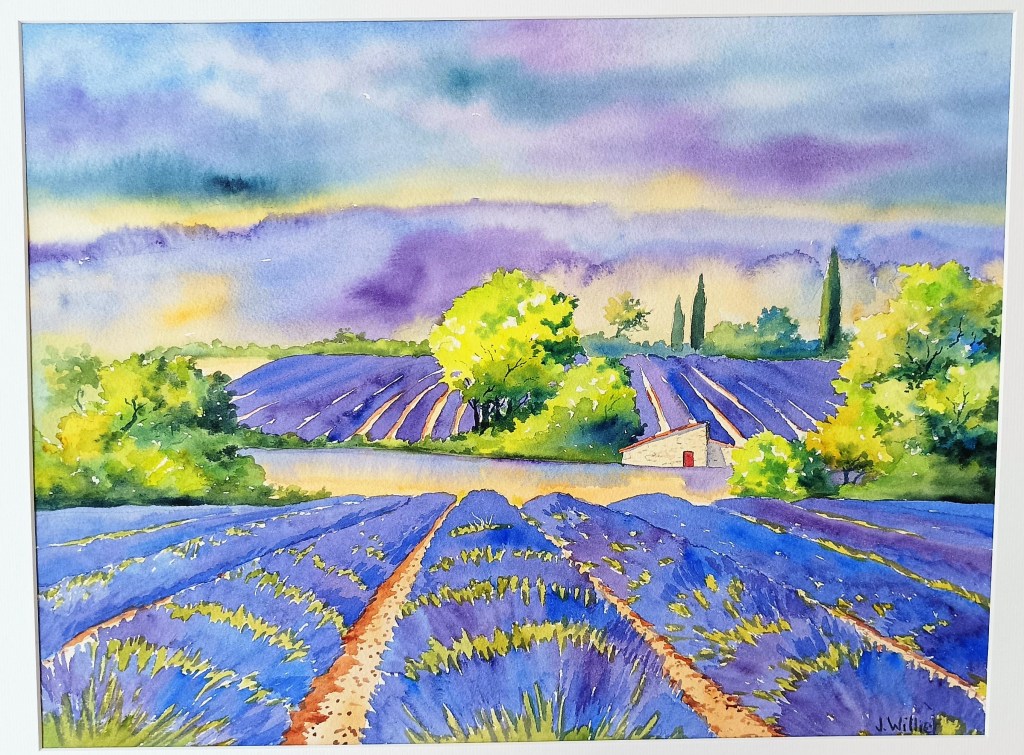 Autre réalisation dans les tons bleus, ce paysage (plus classique) de lavandes :