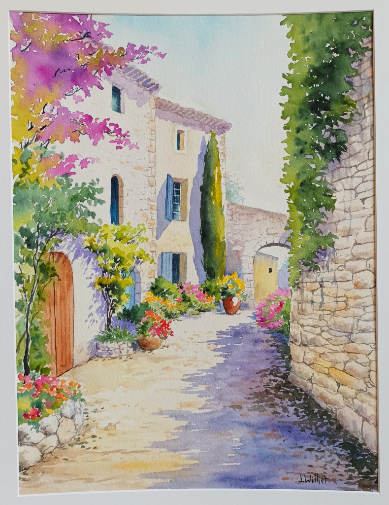 J’ai aussi réalisé cette ruelle fleurie (inspirée de Goult), mais je viens d’apprendre aujourd’hui qu’elle était vendue.. Je vous la montre quand même :