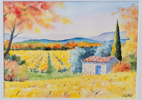 Le mois de septembre se termine demain à la galerie de Roussillon, plutôt positivement, et le succès de mes aquarelles en mouillé sur mouillé (tant décriées en mai par des collègues) me surprend et me ravi.. Je continue donc de peindre, des petits et des moyens formats.. Et le temps passé (jamais perdu) à savoir comment, oublier ces heures qui tuaient parfois à coup de pourquoi le coeur du …labeur..(oui il m’arrive de citer du Goldman ou du Brel, mais j’ai des limites..).. Bref, tout ça pour dire que le travail paye toujours..