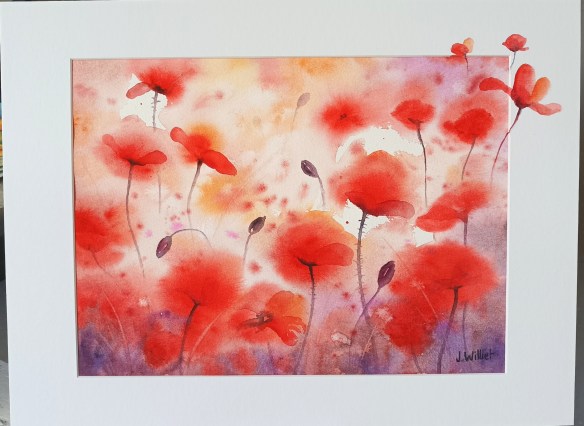 Des coquelicots qui sortent du cadre, comme un désir d’évasion, comme une volonté de s’affranchir des interdictions et de la rigueur.. (22×30 cm).