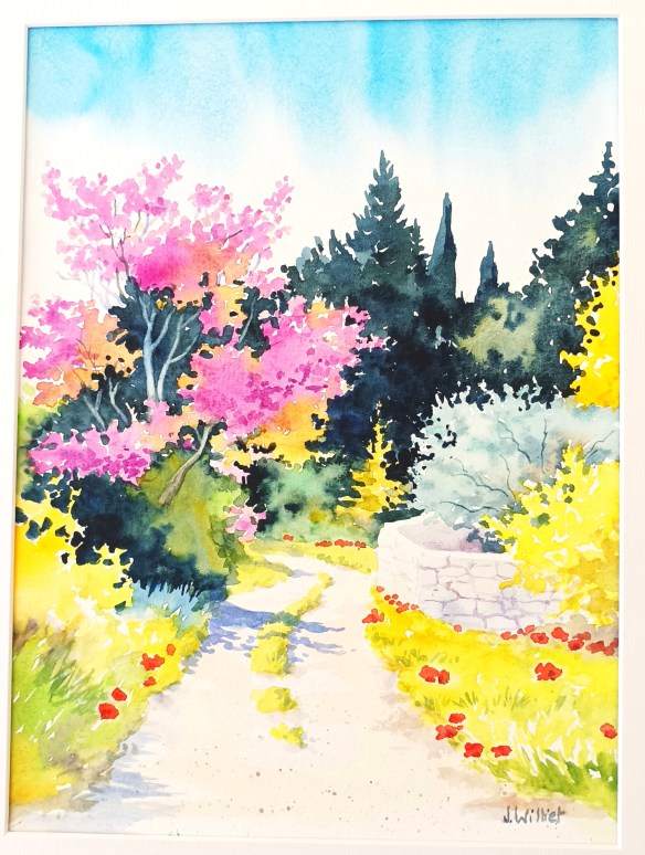 Quant au chemin à l’arbre de Judée, j’en ai fait 2 versions (grand et moyen), et j’ai rajouté des coquelicots en bas pour équilibrer :