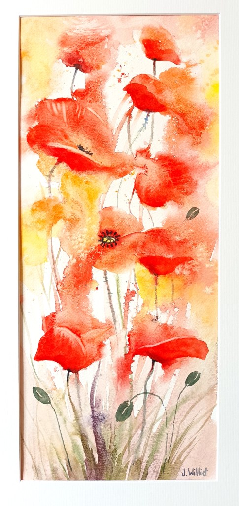 Les exercices du mois de mai sont terminés, je posterai mes commentaires prochainement ; les coquelicots ont eu beaucoup de succès, en voici d’ailleurs une version verticale encore plus suggérée que la dernière fois :