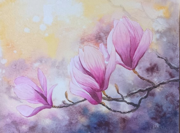 Bref, à propos de forêt, vous souvenez-vous des forêts de magnolias chantées par Claude François ? ( oui j’avoue c’est encore une ref ringarde.. Pardon..).. Je n’ai pas arrêté d’avoir cette chanson dans la tête quand j’ai peint cette aquarelle avec mes élèves cette semaine :