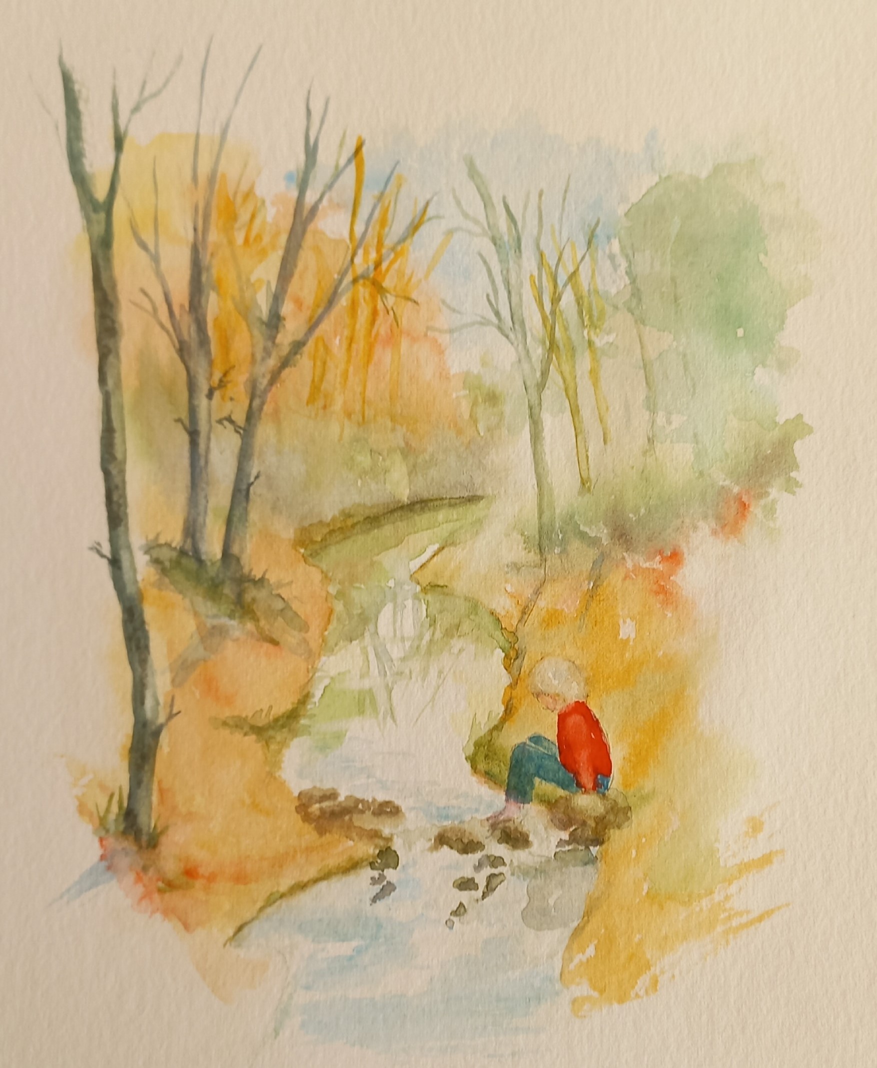 J’aime toujours votre cadrage, et il y a en plus une histoire qui se raconte avec ce personnage.. Pour mon regard le jaune est un peu trop présent au fond, il faudrait tenter des légers bleus violacés, et varier en plus foncé les reflets verts dans l’eau..
