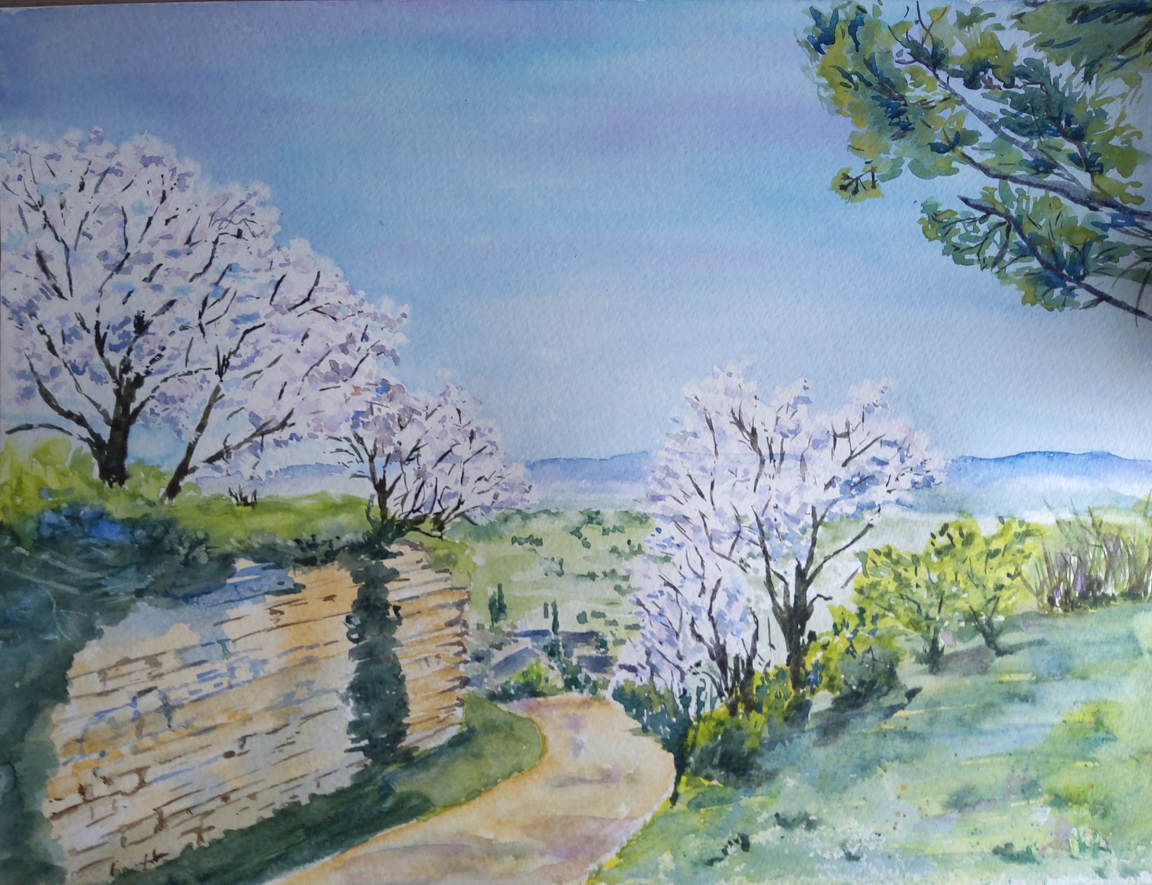 1. Vous vous en êtes plutôt bien sortie, l’ensemble est cohérent et agréable, même si je reprocherais le village un peu trop foncé, et une certaine dureté dans les lignes et la direction des pierres du mur..