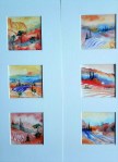 De formats 15 x 35 cm (avec 3 carrés 7 x 7 cm au centre) ces petits triptyques verticaux sont des créations originales, de différents thèmes ou de tonalités variées ; il en existe aussi avec des lavandes, des coquelicots, des oliviers, etc.. (je peux vous envoyer une photo plus ciblée). le prix est de 60 € l’unité.